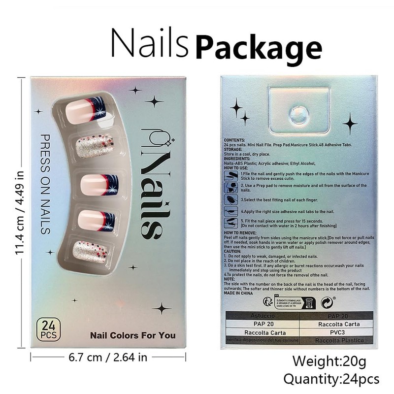 24PCS 4th of July Press on Nails Short July Fourth Fake Nails Wearable Full Cover False Nail Tips for Women and Girls DIY Holiday Manicure Nail Art Decorations