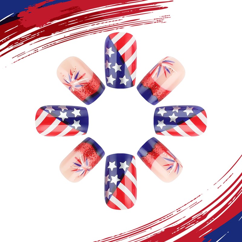 - Fireworks Designs for Every Style: Featuring of American flag patterns, these artificial nails add a touch of elegance to any look. Perfect for expressing your unique personality