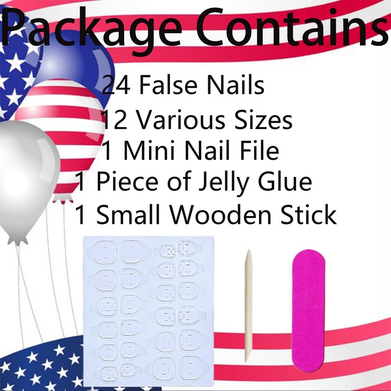 - Easy to use:Just choose the american flag nail piece that suits you, polish the nail bed, paste the jelly glue we give you, and then press the nail for 30 seconds to get your favorite fashion style nail. Due to the limited use of jelly glue, we suggest you use your own glue