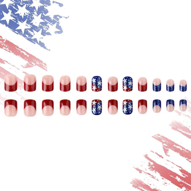 - Easy to Use:4th of July fake nails with glue sticker can get your favorite manicure in just 5 minutes without waiting at the nail salon. Some simple steps allow you to get the same impressive professional effect at home
