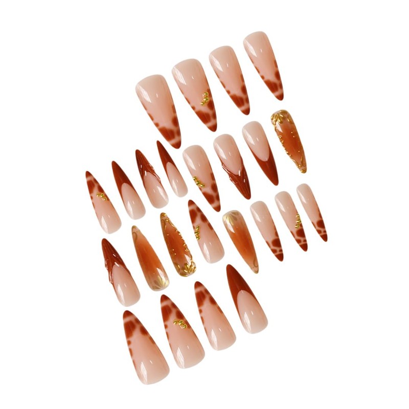 - 【Package Contents】24Pcs Brown French Tip Press on Nails +1 Nail File + 24Pcs Jelly Glue Stickers+1 Alcohol Cotton+1 Wooden Stick.No matter the size or width of your nails, you can choose the most suitable false nails for yourself.