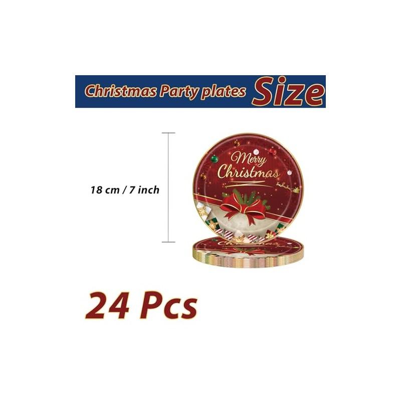 - 🍽️ Ideal size: Children's Creative DIY Paper Tableware Party Decorations Style measures Disposable Merry Christmas Red Plates about 7inch*24pcs,celebrating birthday party ,Boys,Girls,Christmas Party Supplies.