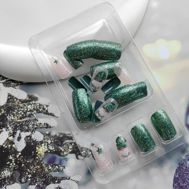 - Convenience: Xmas medium square press on nails can help you save time while decorating your nails better. Change your favorite nail design anytime, just a few minutes, you can use nail glue to stick these Santa Claus fake nails onto your nails