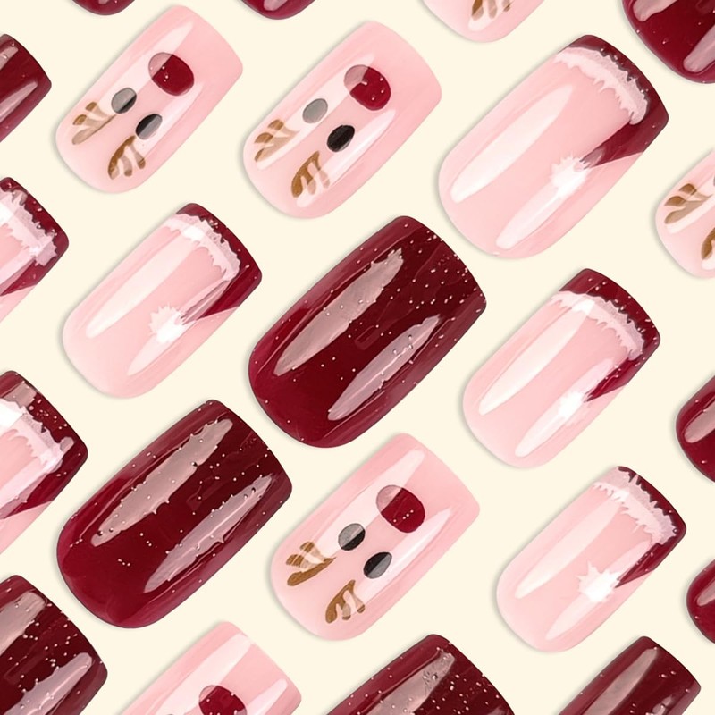 - Material: Christmas Glue on Nails are made of acrylic material, not easily broken or faded, gentle to your natural nails, will give you a nice manicure experience