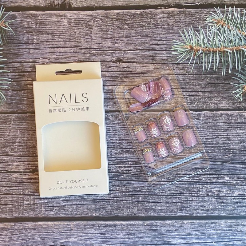 - 【Package Contains】:24 Pcs Christmas short false nails, 24 pieces of jelly glue, 1 piece of alcohol cotton, 1 mini nail file, 1 wooden stick.