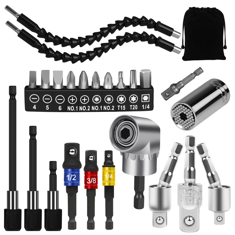 - 🔧Bendable Drill Extension: 11.7inch bendable drill bit extension can twisted and rotated at many different angles. It can be drilled into a small space, in a variety of gaps, rather than your hand, flexible installation work. Let our flexible drill bit extension tool help you solve more problems quickly.