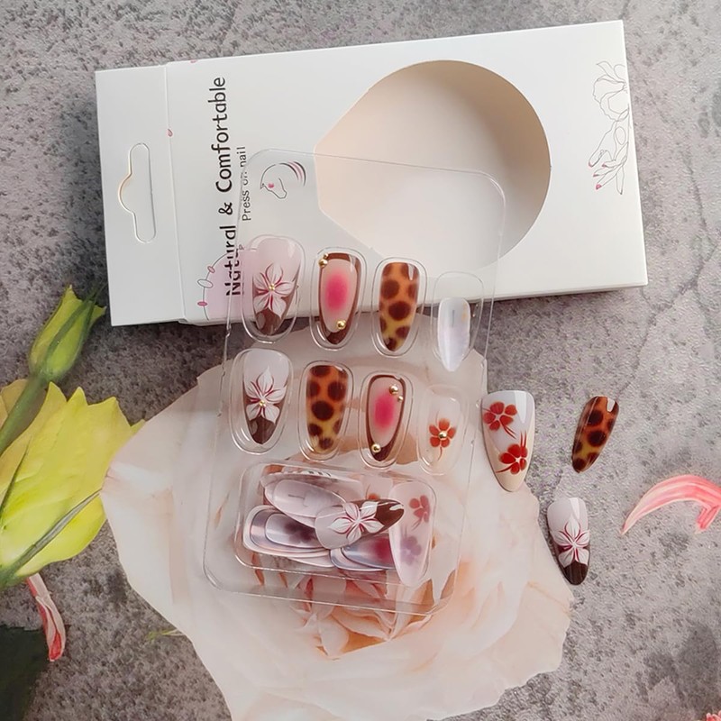 Quantity: 24Pcs leopard print full cover almond false nails set 12 different sizes, that fits your every finger