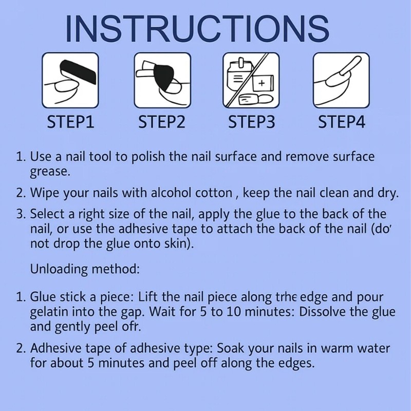 - ✨[Complete application kit] Each stick on nails set comes with all necessary accessories strong jelly accessory tools for secure adhesion that lasts. Achieve salon-quality results in minutes without damaging your natural nails.