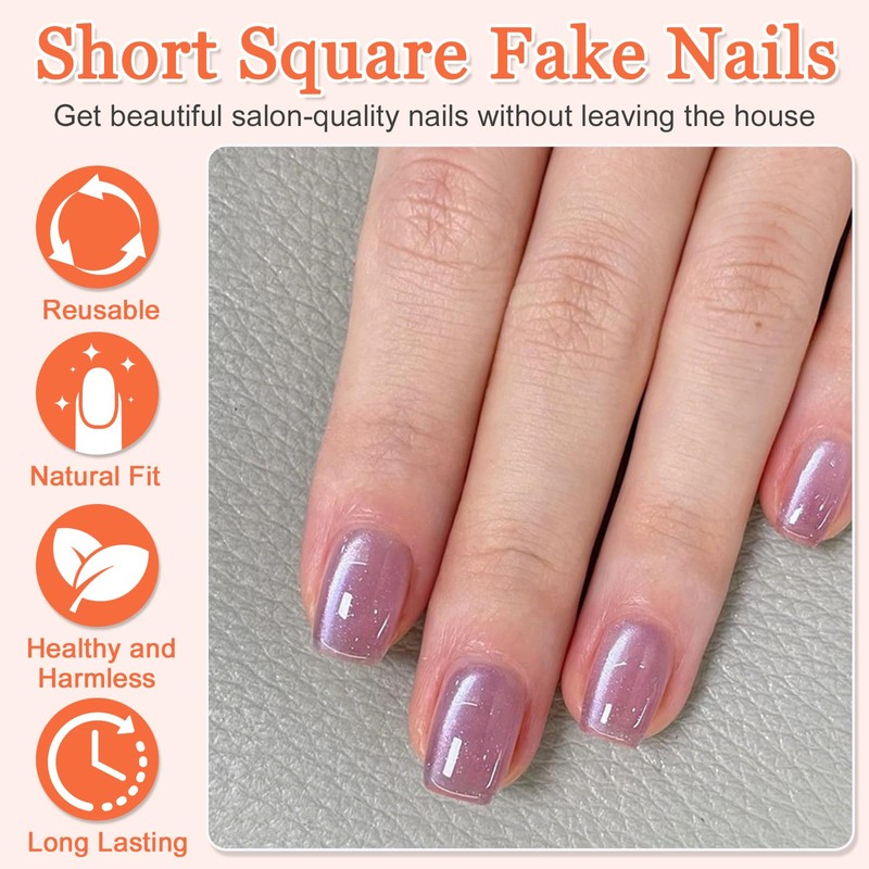 - ✨ 【Glitter Cat Eye Design】These square press on nails showcase a mesmerizing cat eye effect that shifts color with the light, adding a mysterious and stylish touch to your fingertips. Perfect for both everyday wear and special occasions, they effortlessly enhance your elegance and let your hands shine with confidence.