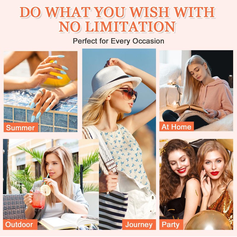 - ✨【Premium Materials】Made from high-quality ABS material, our acrylic nails kit are odorless, lightweight, and gentle on your natural nails. They are thick enough to resist cracking or bending, so you can use them with confidence. The short false nails are designed to fit closely to your natural cuticles, ensuring long-lasting comfort. With a natural softness similar to real nails, they’re reusable and safe even for children.