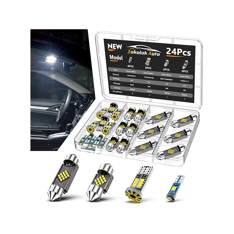 24PCS LED Interior Car Lights, Extremely Bright 6500K White LED Bulb Kit, Applicable to Dome Map Door Lights and Other Parts Replacement for Your Cars, to Help You See Inside The Car at Night