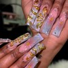 - Unique Curved Design: These long curved fake nails paired with 3D golden steel ball, flower, and rhinestone design exude romantic elegance. This square curved fake nail can effectively elongate your fingers visually, with a strong sense of fashion, especially suitable for creating exquisite nail art, making your fingertips emit charm