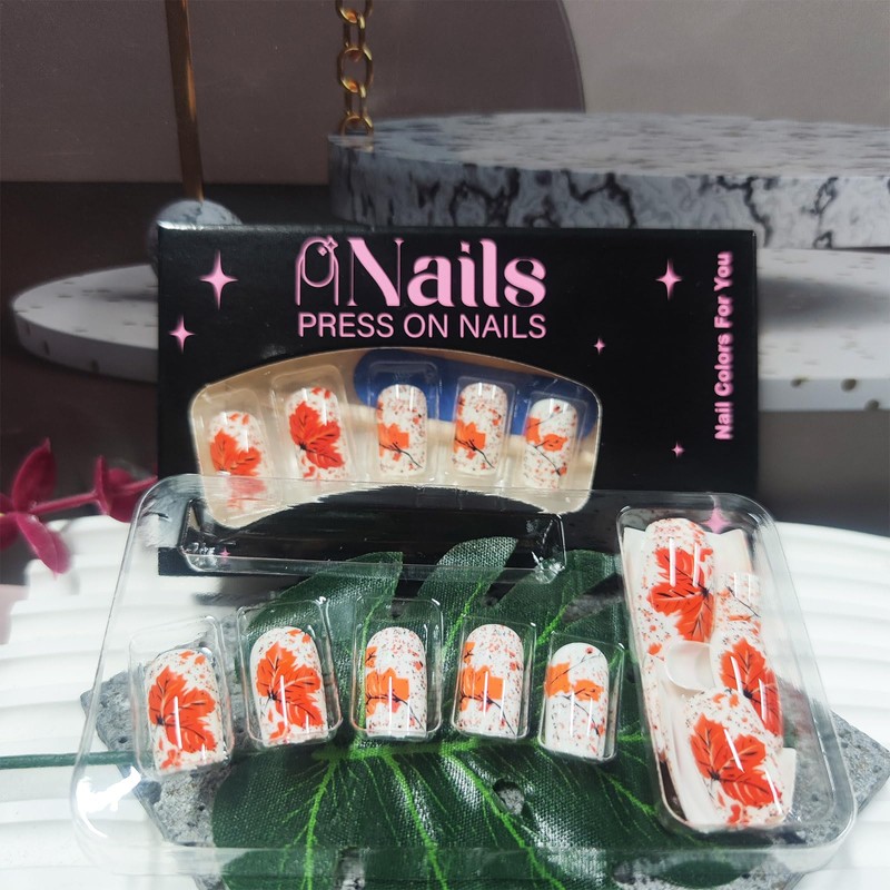- Salon-Worthy Nails: Glossy orange glue on nails maple leaves medium square nails bring the sophistication and elegance. With acrylic press on nails short nails you can enjoy salon-level results in the comfort of your own home