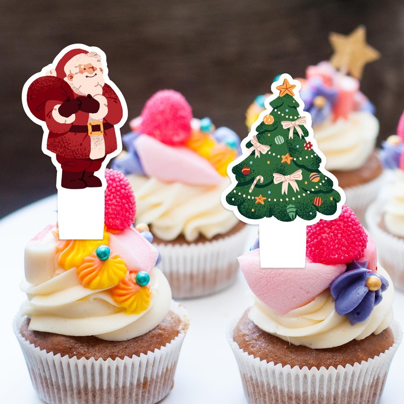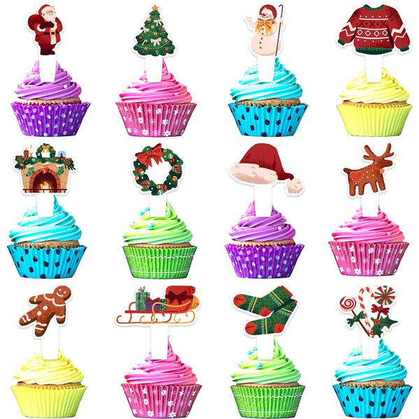 24pcs Merry Christmas Cupcake Toppers Set Happy Birthday Gingerbread, Sanda, Ugly Sweater, Elk Decorations, Boys and Girls Birthday Party, Baby Shower Party Decorations, Holiday Gifts for Kids.LIANGSS