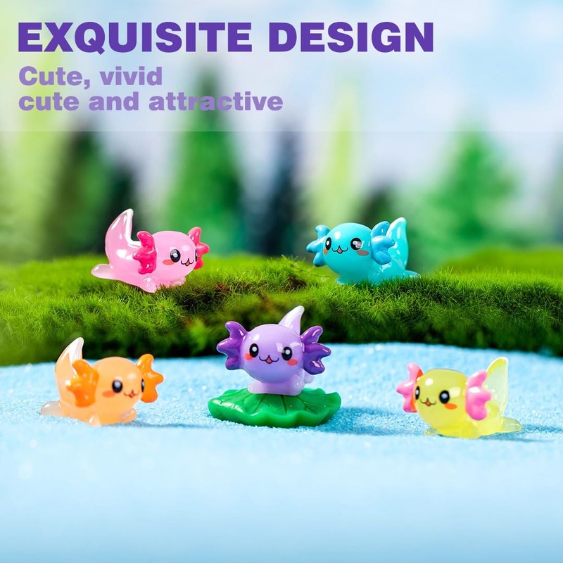 - 【 Packaging Content 】 :You Will Receive 24pcs Of Mini Resin Animals, Including Green *4, Light Blue *4, Yellow *4, Orange *4, Purple *4 And Red *4. The Size Is 2.3×2.6cm, Which Is Enough For Your Daily Decoration. You Can Make A Small Axolotl Garden By Yourself, Which Is Very Lovely.