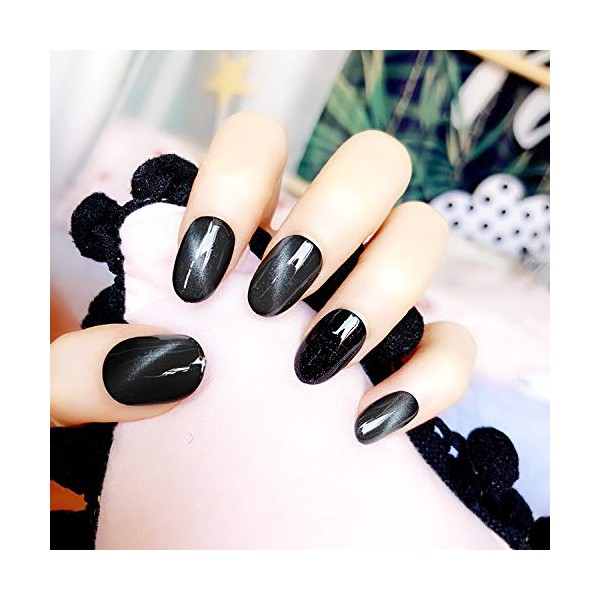 24pcs Nail Tips, Gel Nail Lighting, Solid Color Nail Tips, Cat Eyes, Handmade Nail Art Tips (Black)