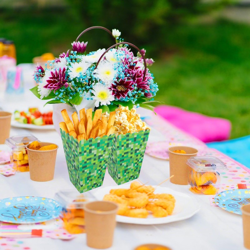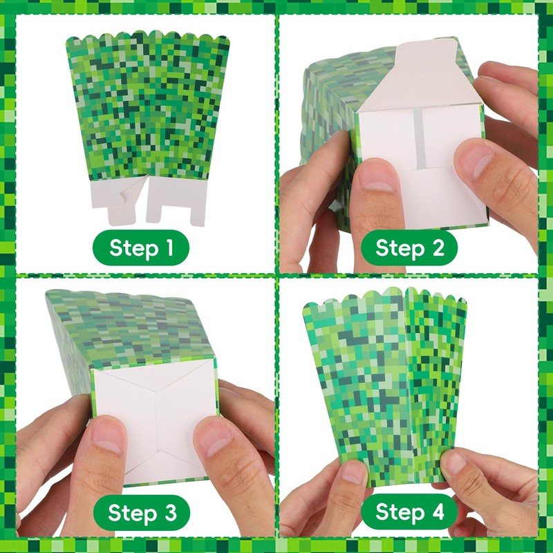 • Wide Applications: These popcorn treat boxes adopt a bright green design to impress your friends. They can be filled with popcorn, cookies, candies, and more, and are suitable for birthday parties, game theme parties, etc.