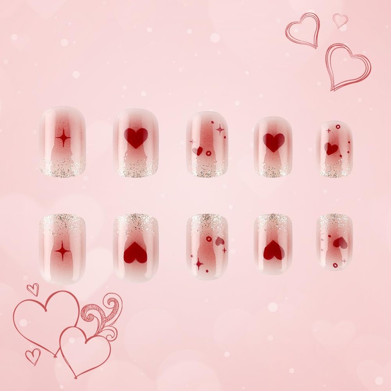 【How Natural They Are】These Valentine's Day press on nails is soft and flexible, zero pressure on your nail beds, and feel like real nails. Supremely fit the nail bed with a gentle flex and a seamless cuticle line. These press on nails is a perfect gift for girlfriend, wife, friends and relatives.