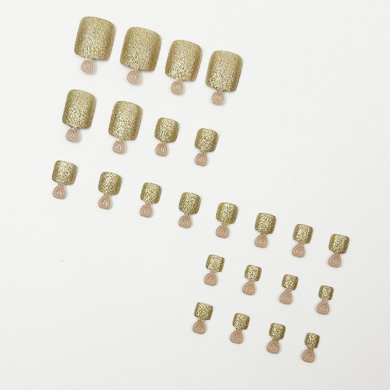 24pcs Press on Toenails Short Square Fake ToeNails with Glitter Design Gold Acrylic Nails Press ons Full Cover Summer False Toenails Reusable Stick on Nails for Women Nail Art