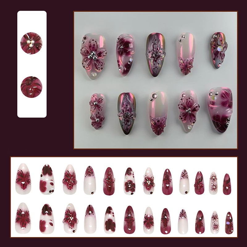 - Package Includes: 24pcs stick on false glue on nails kit, each box includes 24 flower press on nails, 24pcs jelly glue stickers, 1pc nail file, 1pc wooden stick, All the tools you need to apply the nails are included in one set
