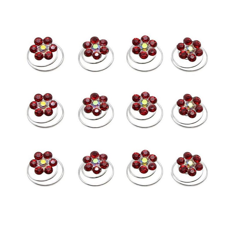 24PCS Rhinestone Flower Spiral Hair Pin Crystal Hair Twisters Coils Hair Clips Metal Spiral Twist Hairpins Hair Pins Wedding Bridal Hair Accessories (Red)