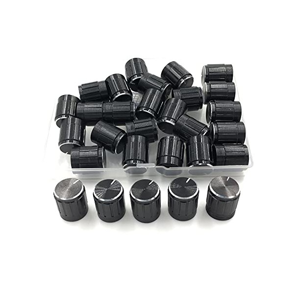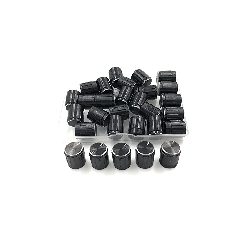 24pcs Shaft Metal Potentiometer Control Knobs 6mm,Black Guitar Pedal Knobs,Dimmer Knob Swicth Replacement,Volume Control Knob Encoder Black,Kelyonewy