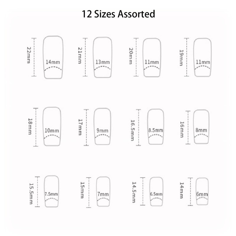 There are 12 different sizes assorted, and you can always find the right size for each finger, no matter what size your nail is.