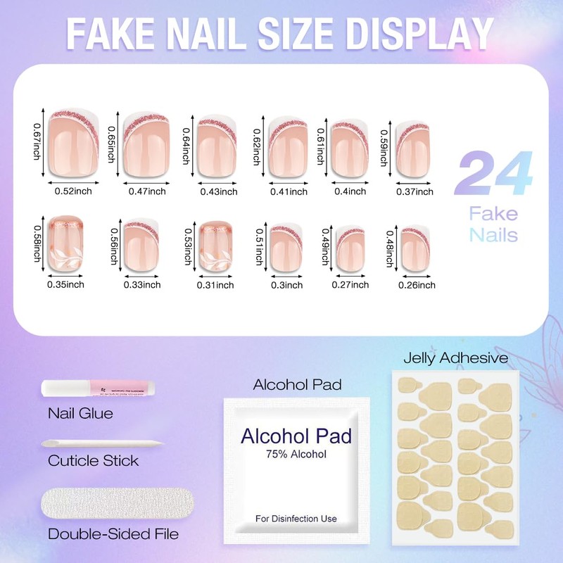 - ✨[24 False Nails + Glue] – Square Short Shape for a Clean Look. Includes 24 short square false nails and professional glue to provide a neat, clean silhouette that fits naturally on your fingertips.