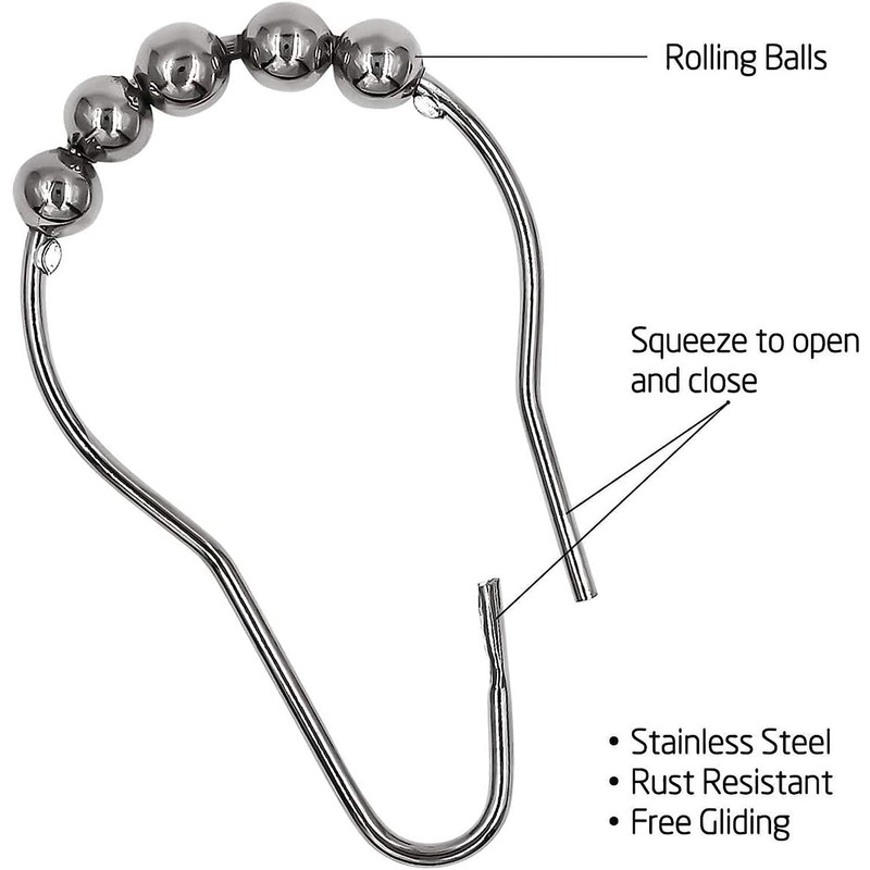 4. 5 ball rollers on each hook for ease of movement along the rail, Easy to add the curtains and to attach onto rails, Shower curtains glide across the rail with ease.