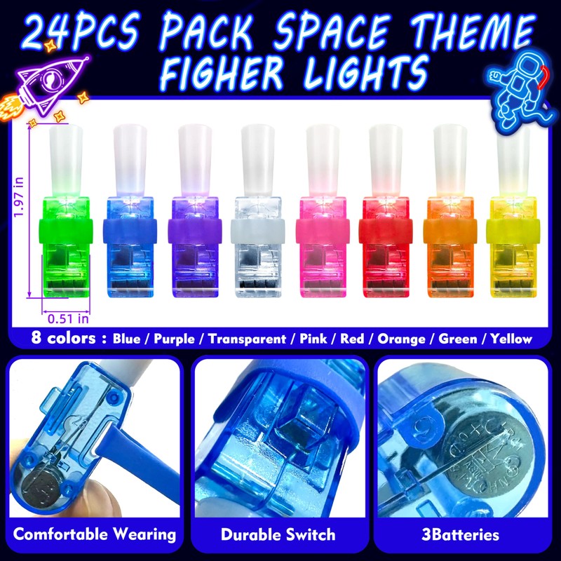 24PCS Space themed Party Favors-LED Finger Lights:Glow-in-the-Dark Light-Up Toys Bulk for Kids Boys Girls,Outer Space Party Decorations Supplies, Party Goodie Bags, Classroom Prizes, Fun Gifts