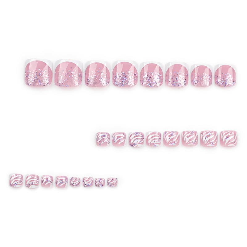 - 【Package Contents】24Pcs Press on Toenails +1 Nail File + 24Pcs Jelly Glue Stickers+1 Alcohol Cotton+1 Wooden Stick.No matter the size or width of your toenails, you can choose the most suitable false toenails for yourself.