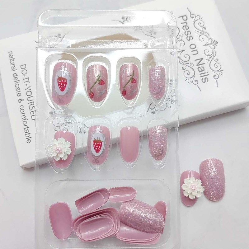 - Easy to Apply:Full cover spring flower false nails set are instead of spend lots time, you can change you nails style in 15 min .Clean your nails before use and avoid using water for the first hour after wearing them , strawberry acrylic nails will stay longer