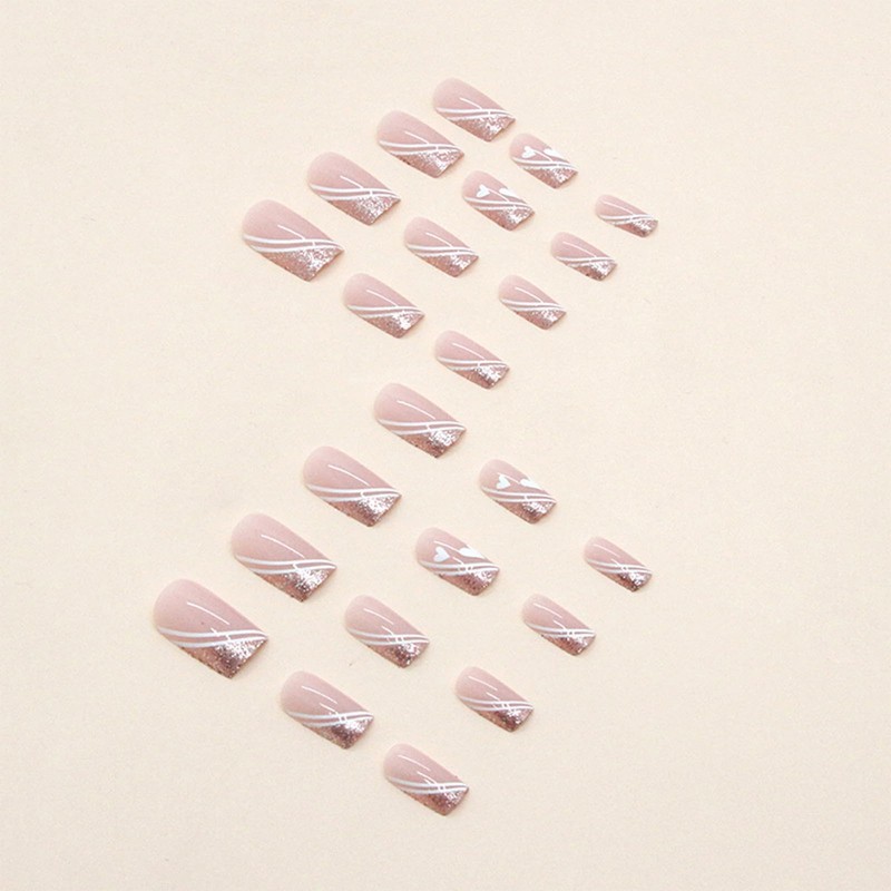 24pcs Square False Nails French Tip Short Stick on Nails Glitter Pink Press on Nails with Heart Removable Glue-on Nails Full Cover Fake Nails Women Girls Nail Art Accessories