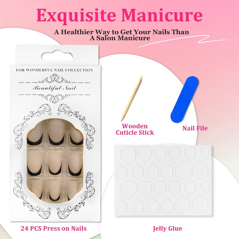 - 💅【Easy to Use】No more costly and time-consuming salon trips. Applying our glue on nails is a breeze, even for beginners. Just choose the nail piece that suits you, polish the nail bed, paste the jelly glue we give away, and press trendy nails for 20s to get the natural manicure that girls like.