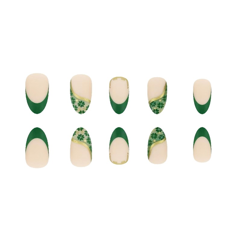 - Exquisite Design: This fake nail features a green shamrock pattern and golden stripe design, perfect for use at St. Patrick's Day parties. These acrylic nails are sure to make your St. Patrick's Day holiday look even more eye-catching