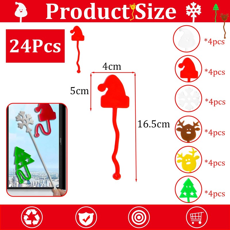 - Multiple Styles: There are like Christmas trees, snowflakes, brown deer, Christmas hats, yellow reindeer, white Father Christmas, random 24p Sticky Hands Toy for Christmas Party.