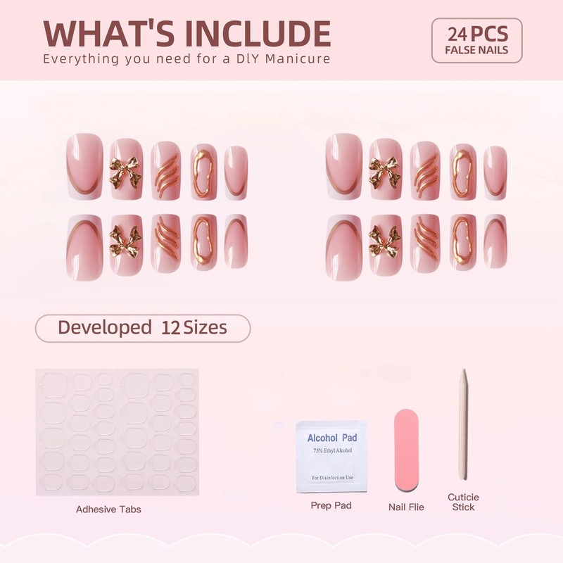 - 【Package Contains】:You will get 24 Nails in 12 Sizes.Select nails that best fit your size and adhere them from bed to tip.Press for 10 seconds.