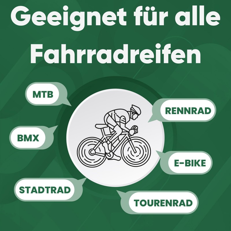• Areas of use: ideal for all standard bicycle tyres and rims, perfect for repairs on the go