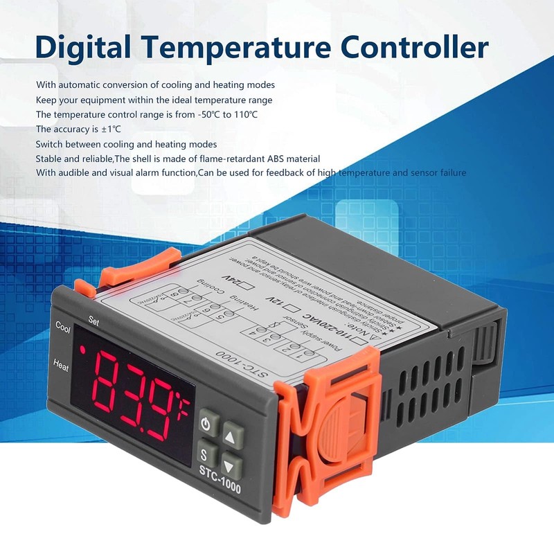 24V Temperature Controller for STC-1000, Digital Display Temperature Controller, Cooling and Heating Thermostat with NTC Sensor