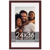 - Solid wood brown photo frame, made to display artwork, poster, or print measuring 24x36 inches with the included white photo mat or 28x40 without the mat. Mat openings are 1/2" smaller than the image size, ensuring a secure fit in the frame.
