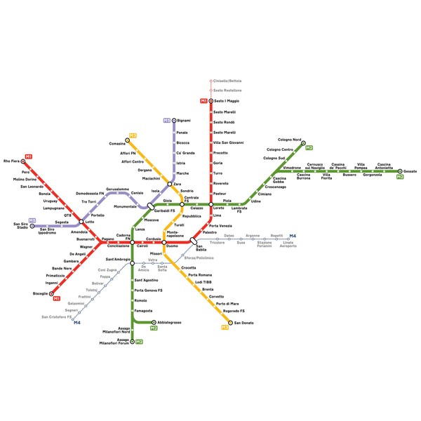 24x36 gallery poster, Milan Metro Map rapid transit system, Italy