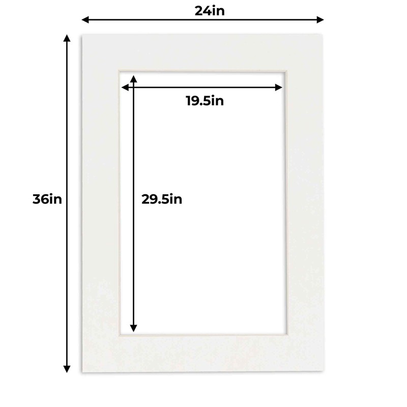 - THIS IS FOR ONE SINGLE MAT without backing and bags , Featuring a picture opening for a 20x30 inch photo, to fit in a 24x36 inch picture frame. Photo openings are beveled cut 0.5" smaller than the art size advertised to overlap the photo and help keep it securely in the frame.