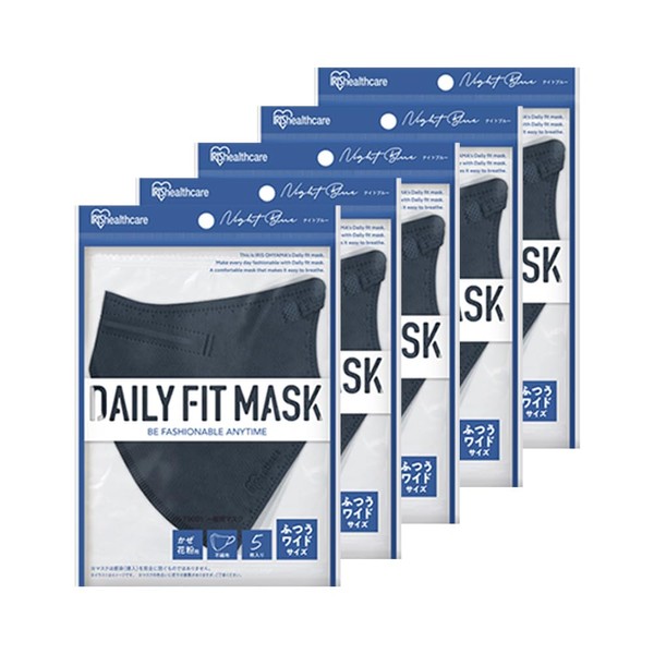 [アイリスオーヤマ] マスク 25枚 不織布 立体マスク カラーマスク デイリーフィットマスク 個包装 ふつうワイド 血色マスク 秋用マスク チークマスク くちばし 3Dマスク 5枚入りx5 RK-F5MXN ナイトブルー