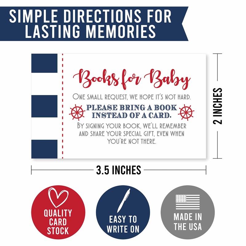 25 Baby Shower Book Request Baby Shower Guest Book Alternative - Nautical Baby Shower Invitation Inserts, Books for Baby Shower Request Cards, Bring A Book Instead of A Card, Baby Shower Book Request