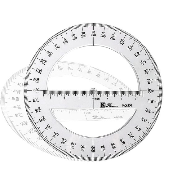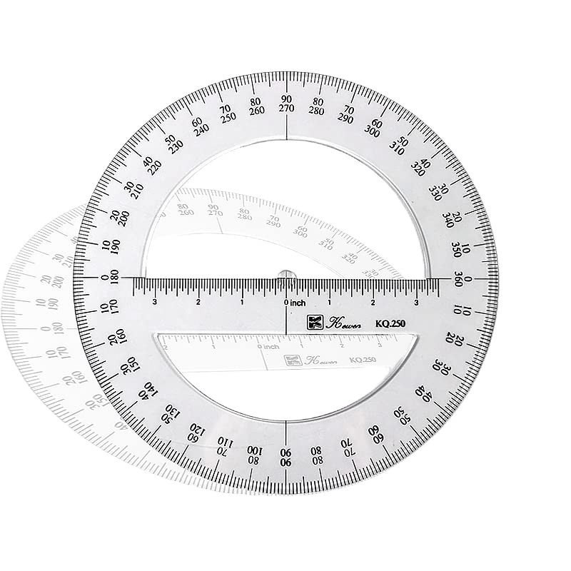 - Easy to draw and adjust - small size, lightweight, easy to store. The clear colour makes it easy to measure and you can see the numbers and letters on the side through the protractor.