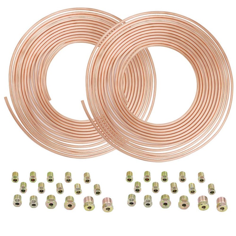 25 ft 3/16 Copper Coated Brake Line Kit Complete Replacement Brake or Fuel Tubing (Includes 16 x 2 Fittings), Easy to hand bend (.028) Wall Thickness, Rust Proof (2 kits)