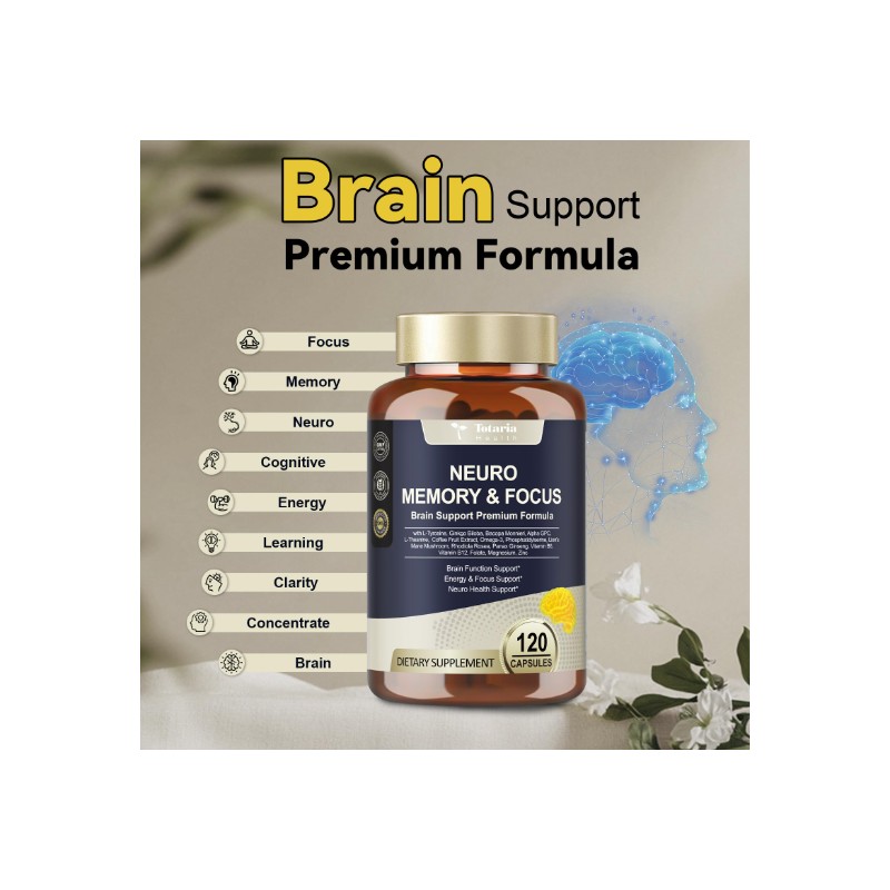 Brain Focus Function Support: Our brain nootropic capsules are designed to provide targeted support for your brain function. Packed with scientifically-backed ingredients like L-Tyrosine, Ginkgo Biloba, Bacopa Monnieri, and Alpha GPC, these capsules help promote mental clarity, focus, and cognitive performance. Whether you need an energy boost for your busy day or want to sharpen your mind, our formula supports your brain’s natural capabilities.
