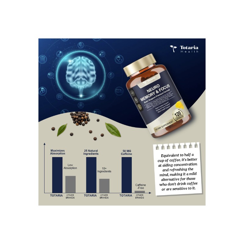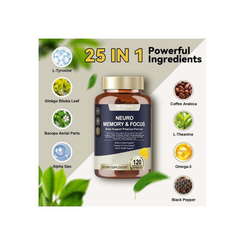 Cognitive & Memory Enhancement: Designed to enhance memory and cognitive function, our memory supplement for brain capsules improve mental clarity and retention. L-Tyrosine supports stress reduction and improves cognitive performance under pressure, while Bacopa Monnieri helps with memory recall and mental clarity, ensuring that your mind stays sharp throughout the day.