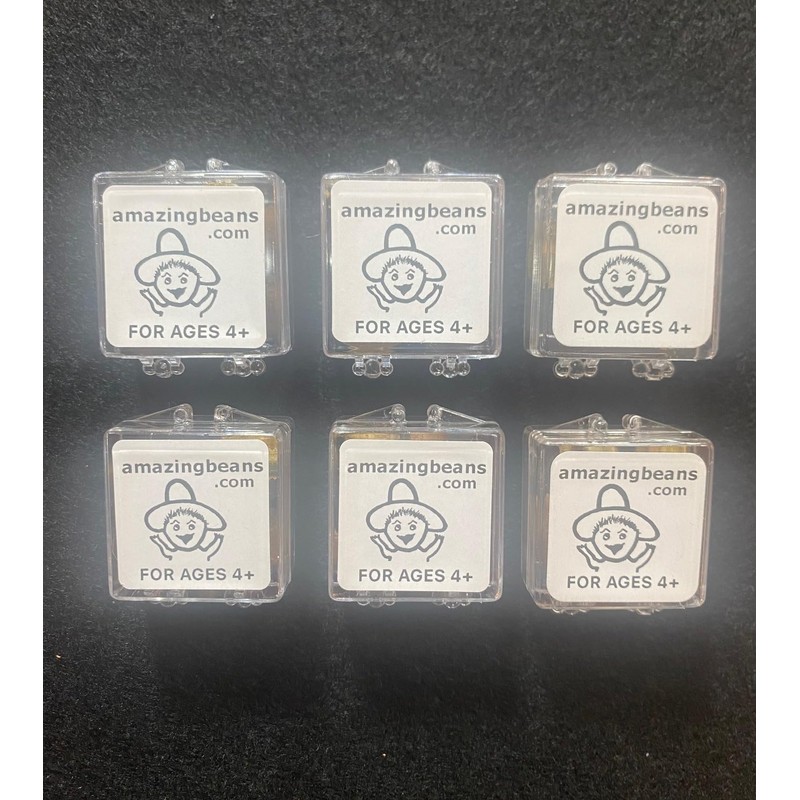 - 6 plastic cases of jumping beans. With 5 jumping beans in each case.