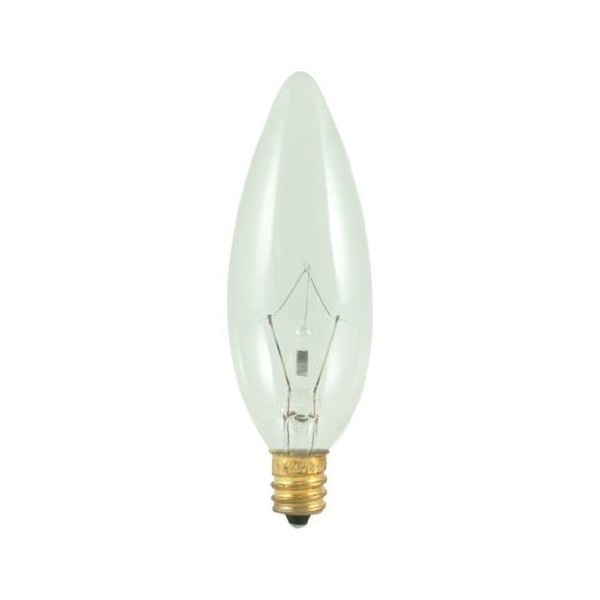 - 25 Watt, 190 Lumen, 120 Volt, 2600 Kelvin, 100 CRI, 1,500 Average Rated Life Hours, Candelabra (E12) Base